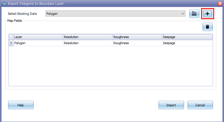 - In the Import Polygons to Boundary Layer window, select the polygon layer from the available layers in the drop-down option (if the layers are already in the ArcMap TOC). Alternatively, browse your computer to select the desired layer(s). Then Click add button to add the layer in the table.